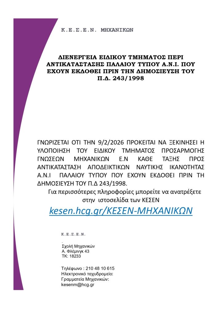ΕΛΛΗΝΙΚΗ ΔΗΜΟΚΡΑΤΙΑ ΥΠΟΥΡΓΕΙΟ ΝΑΥΤΙΛΙΑΣ ΚΑΙ ΝΗΣΙΩΤΙΚΗΣ ΠΟΛΙΤΙΚΗΣ ΑΡΧΗΓΕΙΟ ΛΙΜΕΝΙΚΟΥ ΣΩΜΑΤΟΣ- ΕΛΛΗΝΙΚΗΣ ΑΚΤΟΦΥΛΑΚΗΣ ΚΕΣΕΝ Π-Μ