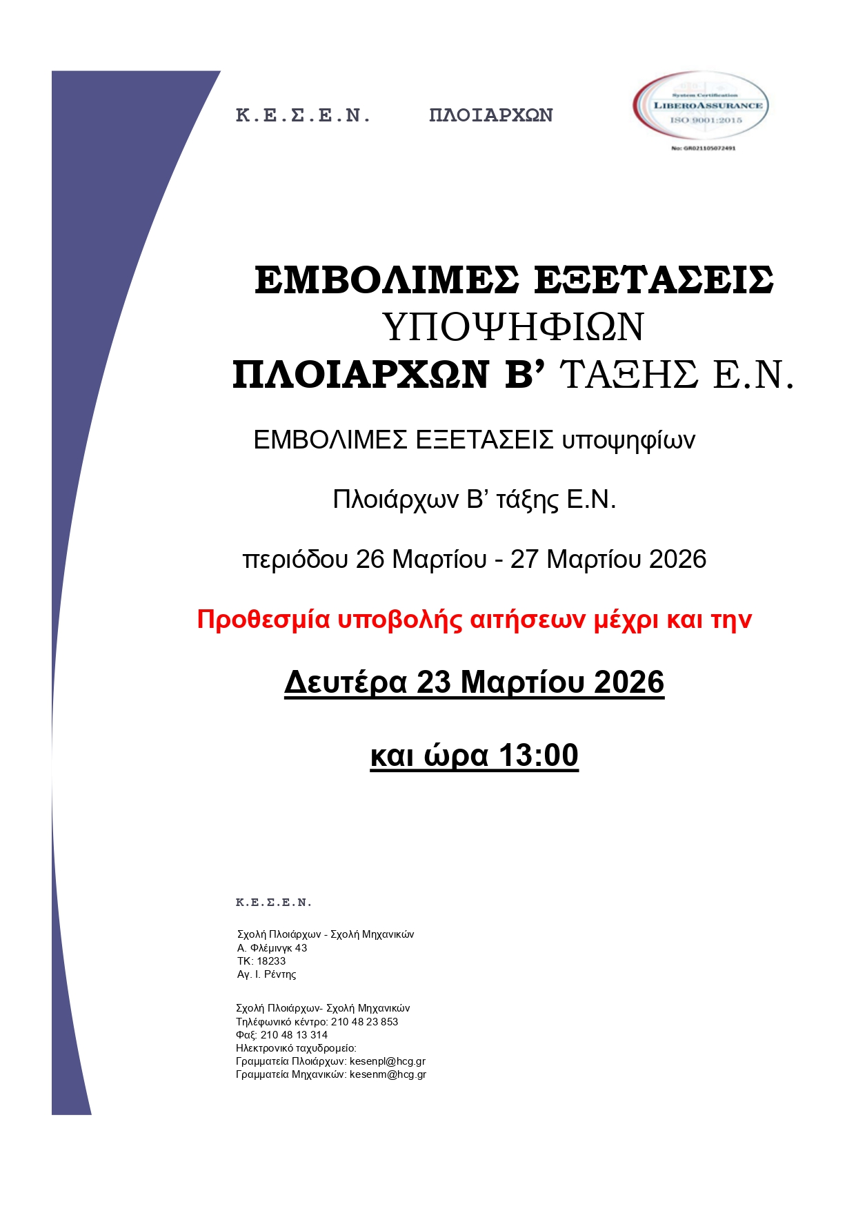 ΕΛΛΗΝΙΚΗ ΔΗΜΟΚΡΑΤΙΑ ΥΠΟΥΡΓΕΙΟ ΝΑΥΤΙΛΙΑΣ ΚΑΙ ΝΗΣΙΩΤΙΚΗΣ ΠΟΛΙΤΙΚΗΣ ΑΡΧΗΓΕΙΟ ΛΙΜΕΝΙΚΟΥ ΣΩΜΑΤΟΣ- ΕΛΛΗΝΙΚΗΣ ΑΚΤΟΦΥΛΑΚΗΣ ΚΕΣΕΝ Π-Μ